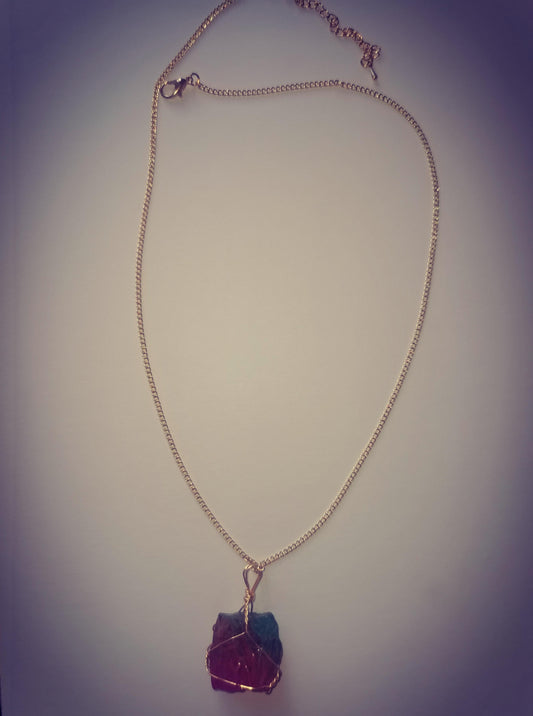 Z Chakra Stimulation, Manifestation Rainbow Quartz Copper Wire Wrapped Crystal Chakra Pendant Necklace